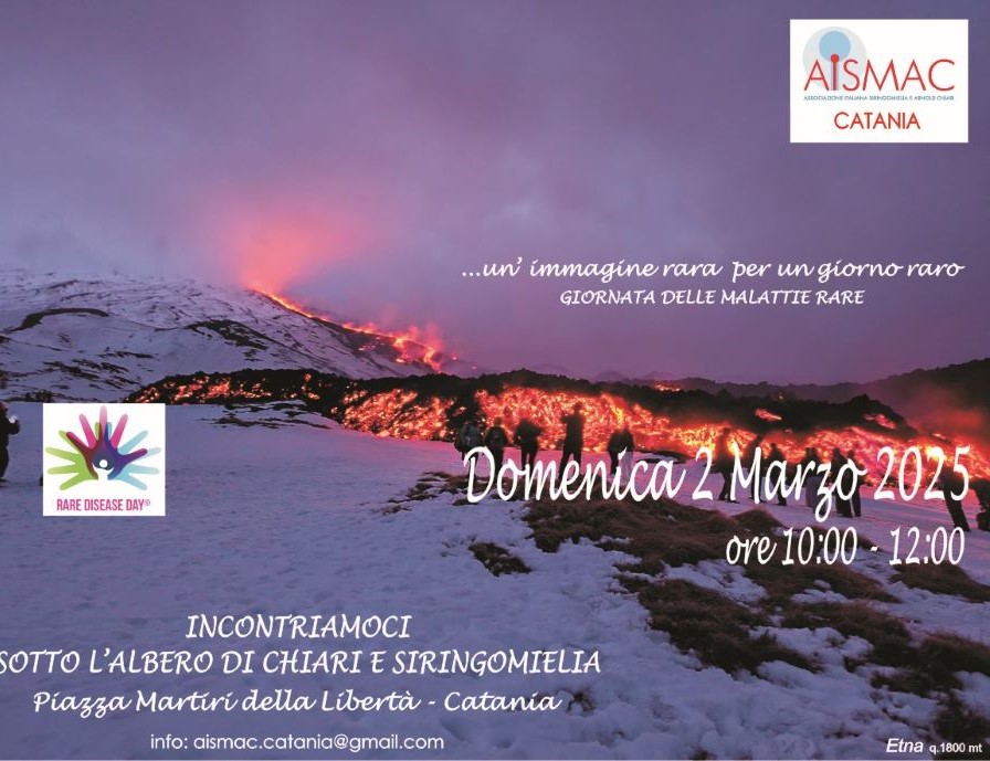 Anche quest’anno, AISMAC (Associazione Italiana Siringomielia e Arnold Chiari) partecipa al Rare Disease Day, la giornata mondiale dedicata alle malattie rare. L’evento, parte del circuito internazionale di sensibilizzazione, si terrà a Catania domenica 2 marzo 2025 presso l’Albero dei Rari, simbolo di speranza e consapevolezza.