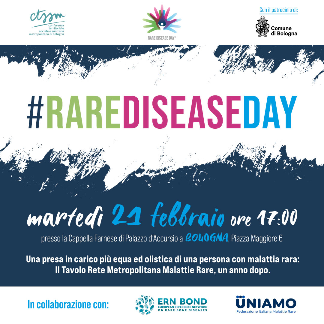 UNA PRESA IN CARICO PIU’ EQUA ED OLISTICA DI UNA PERSONA CON MALATTIA RARA: IL TAVOLO RETE METROPOLITANA MALATTIE RARE, UN ANNO DOPOLo scorso anno in occasione della celebrazione di questa giornata, presso la Cappella Farnese di Palazzo d’Accursio, i Direttori Generali dell’Istituto Ortopedico Rizzoli dott. Anselmo Campagna, dell’AOSP S.Orsola dott.ssa Chiara Gibertoni e dell’ AUSL Bologna-IRCCS Neuroscienze dott. Paolo Bordon insieme al rappresentante di Unibo, prof. Marco Seri e alla Presidente di UNIAMO, Federazione Italiana Malattie Rare, Annalisa Scopinaro, hanno concordato sull’opportunità di definire una rete tra le 3 aziende volta a fornire una presa in carico integrata dei pazienti affetti da malattie rare.