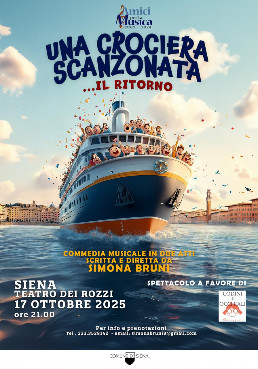 Il primo evento, venerdì 17 ottobre, vedrà in scena al Teatro dei Rozzi la commedia musicale “Una crociera scanzonata…il ritorno”, uno spettacolo benefico realizzato dall’associazione Amici per la Musica, il cui ricavato sarà interamente devoluto all’associazione Codini e Occhiali odv. Un’occasione unica per unire divertimento e solidarietà contribuendo a sostenere progetti di ricerca e supporto alle famiglie.