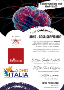 Il giorno seguente, sabato 18 ottobre, si terrà un convegno su ADHD e disturbi dell’apprendimento presso i locali dell’ Italian Experience Siena Hub in via di città 25. L’evento, rivolto a famiglie, insegnanti, ragazzi ed esperti del settore, si propone di fare luce su mero significato di ADHD, sull’importanza dell’utilizzo degli strumenti compensativi e dispensativi, offrendo un momento di formazione e confronto con esperti del settore.